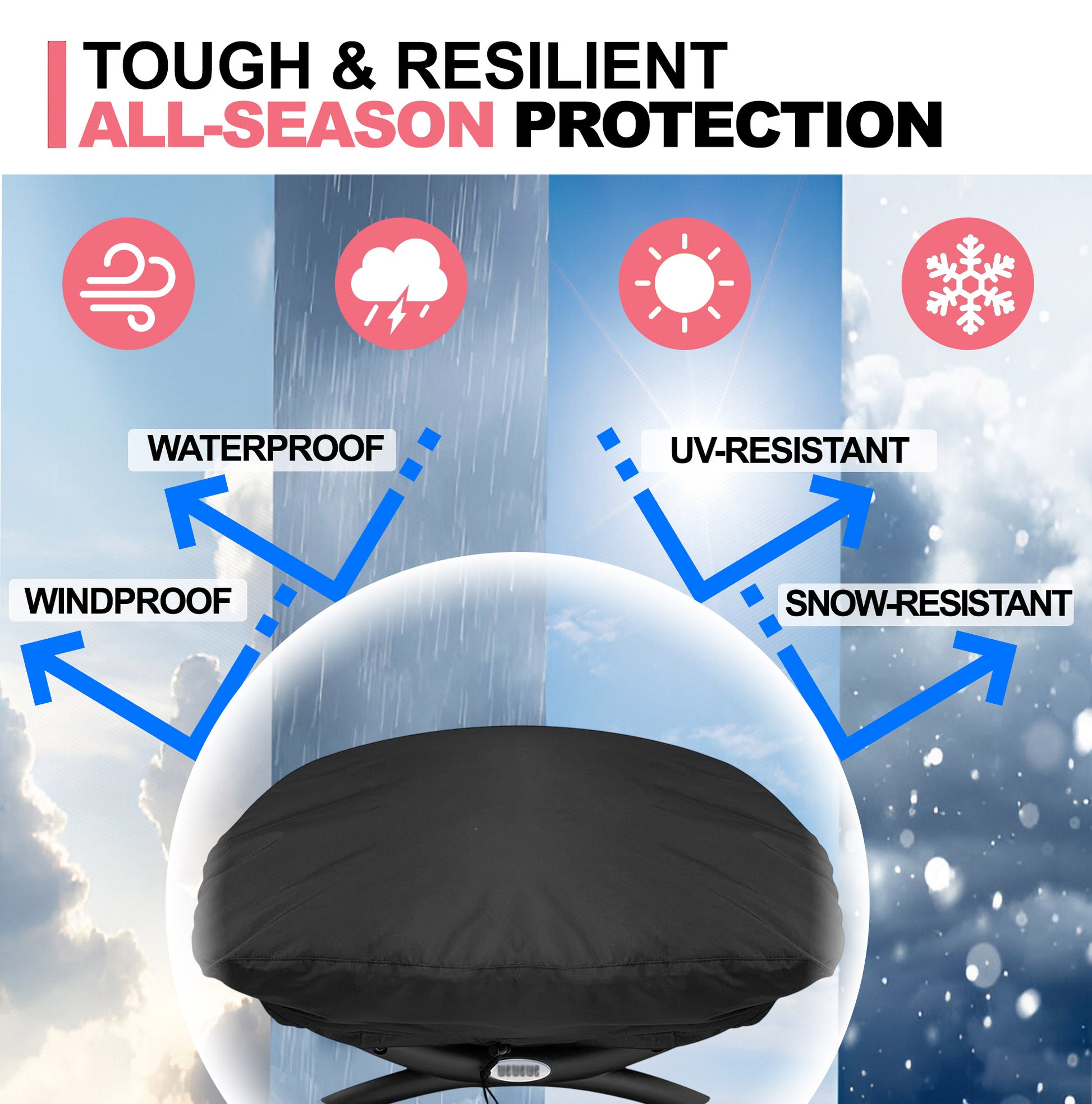 ✅【Premium 600D Oxford-kangas】➤ Grillisuoja on valmistettu kestävästä, haalistumattomasta 600D Oxford-kankaasta, jossa on vedenpitävä PU-pinnoite, tarjoten erinomaista kestävyyttä ja pitkäaikaista suojaa. Laadukkaalla vahvistetulla ompeleella tämä suojus ylittää OEM-vaihtoehdot sekä lujuudessa että luotettavuudessa. Paksumpi ja raskaampi kuin useimmat suojukset, se tarjoaa paremman suojan UV-säteiltä, sateelta, lumelta, pölyltä ja muilta ankaria sääolosuhteilta – pitäen grillisi suojattuna ympäri vuoden.