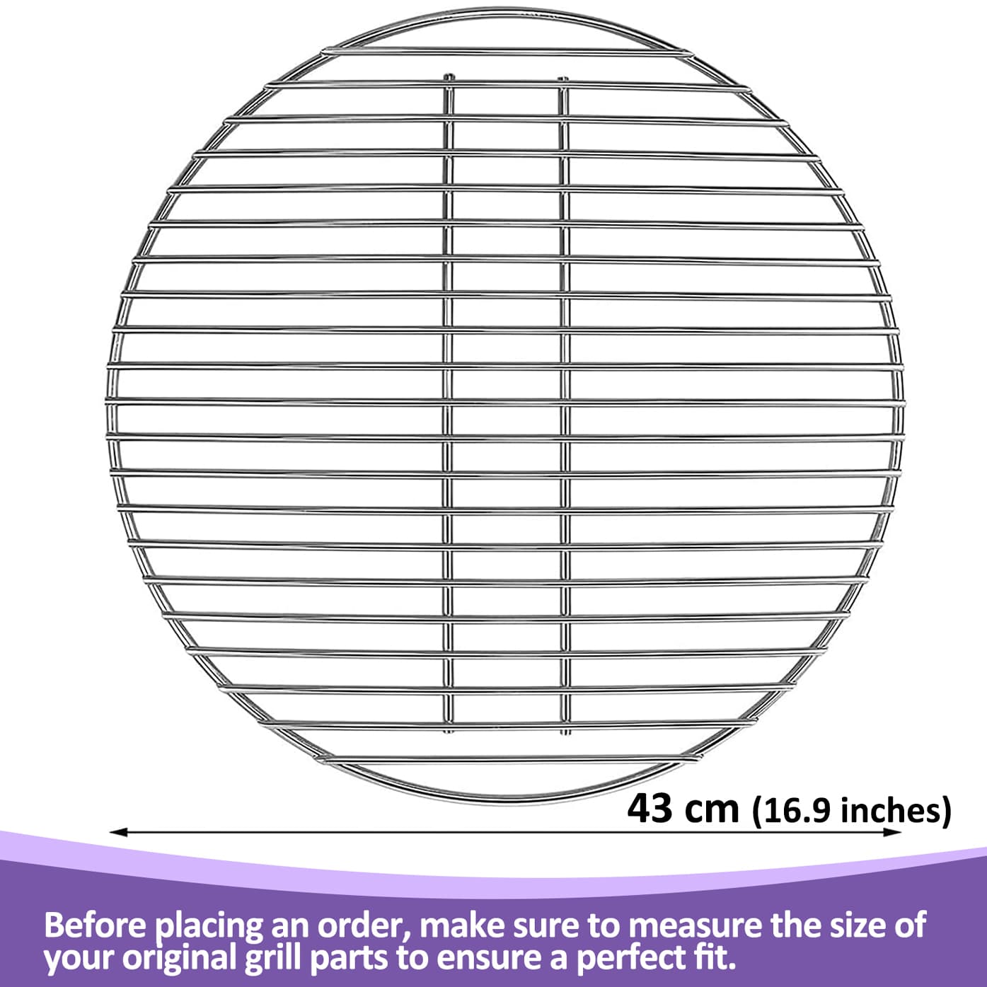 ✅ Mitat: Pyöreän hiiligrilliritilän halkaisija on 43 cm.