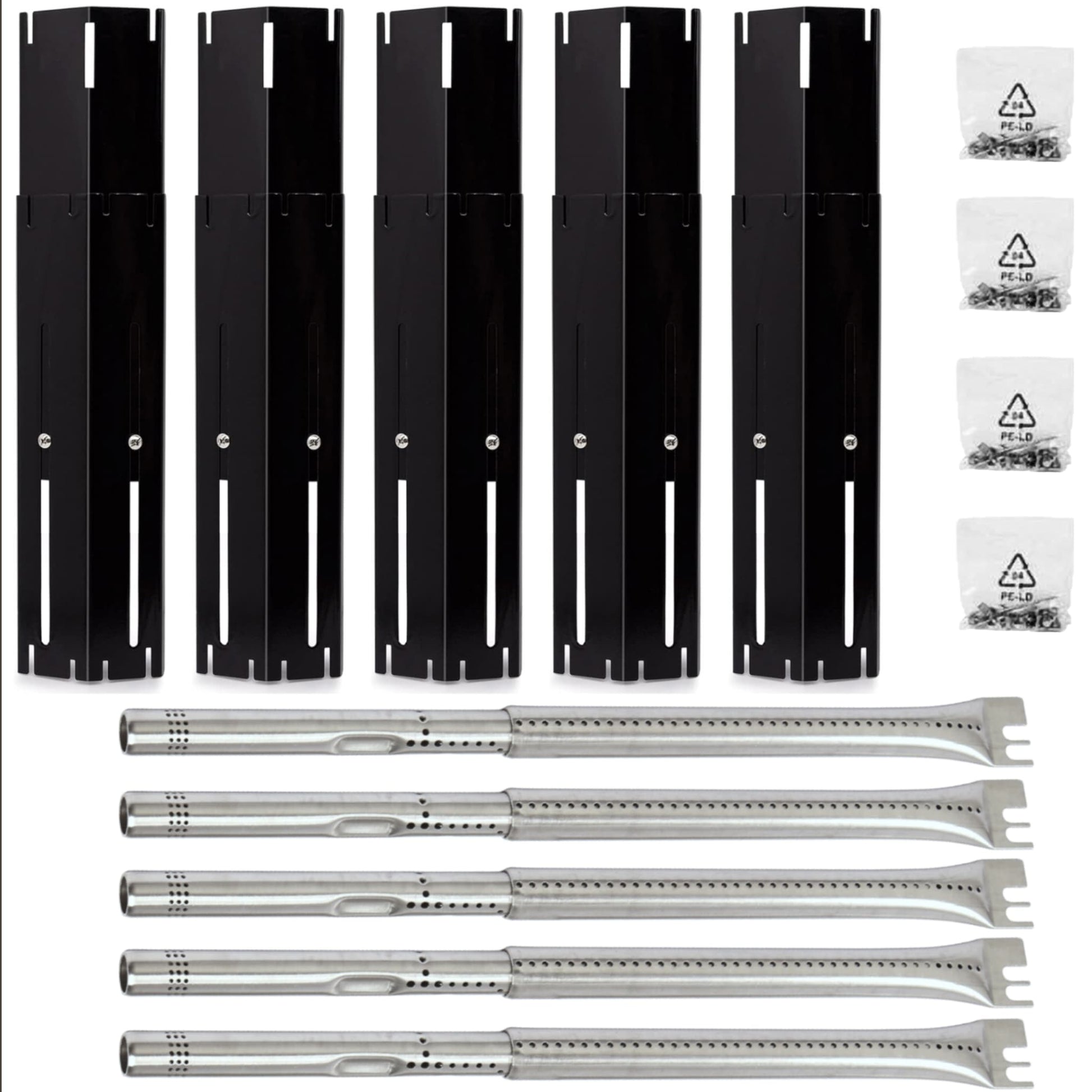 5 kpl sarja säädettäviä posliiniteräksisiä poltinsuojia / Flavorizer Bars ja ruostumattomasta teräksestä valmistetut polttimet (1.27 cm halkaisija) BBQ-kaasugrilleille, yleismalliset osat