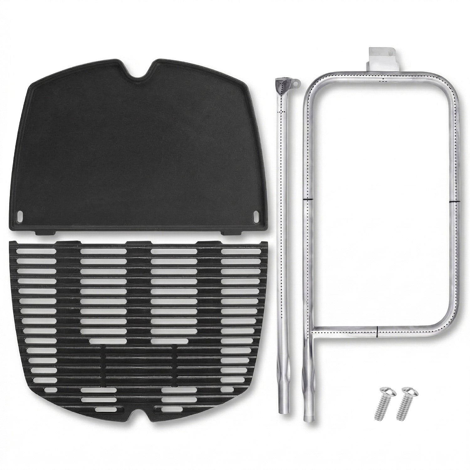 • ✅ Pakkaus sisältää: 1 × valurautainen grilliritilä, 1 × valurautaparila, 1 × "P"-muotoinen poltinputki, 1 × suora poltinputki ja 2 ruuvia